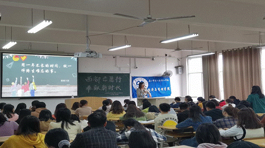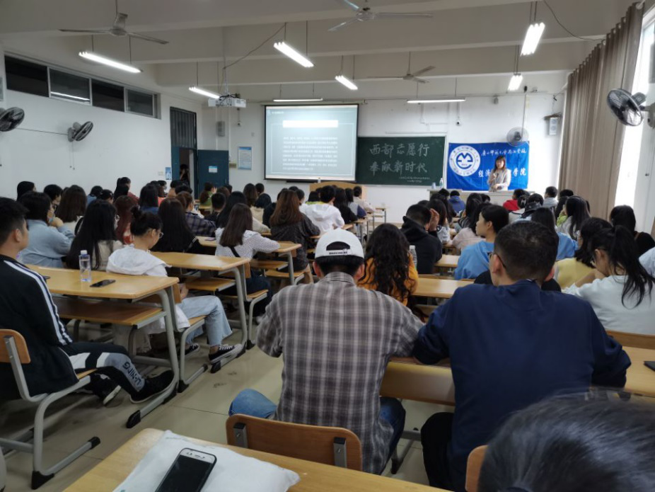 为强化大学生奉献服务精神,激励优秀学子投身到建设西部事业中,经济与管理学院于11月20日在1309教室开展“西部志愿行,奉献新时代”西部计划宣讲活动。本次活动,由我校原西部计划负责覃倩云老师主讲。