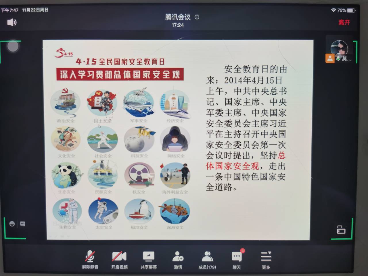 为全面贯彻落实总体国家安全观,教育学生牢固树立国家安全意识,11月22日晚,理工学院全体辅导员利用线上、线下开展了“维护国家安全,人人有责”主题班会。