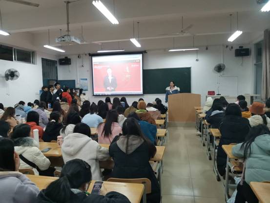 学生在教室观看报告会回放