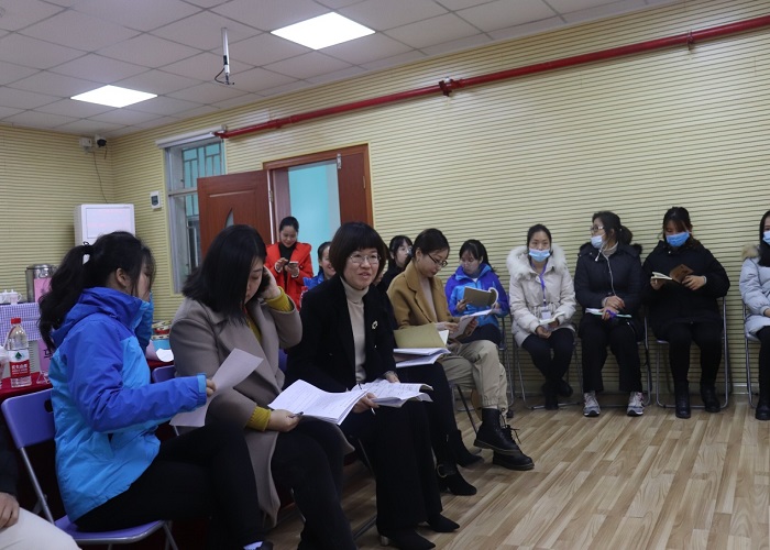 图:西城路幼儿园副园长韦华主持开展课后教研