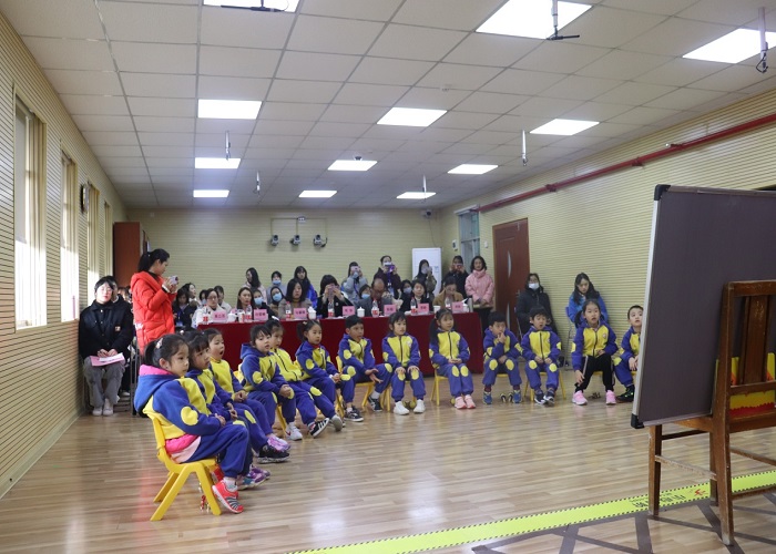图:西城路幼儿园大二班的韦波老师上课场景