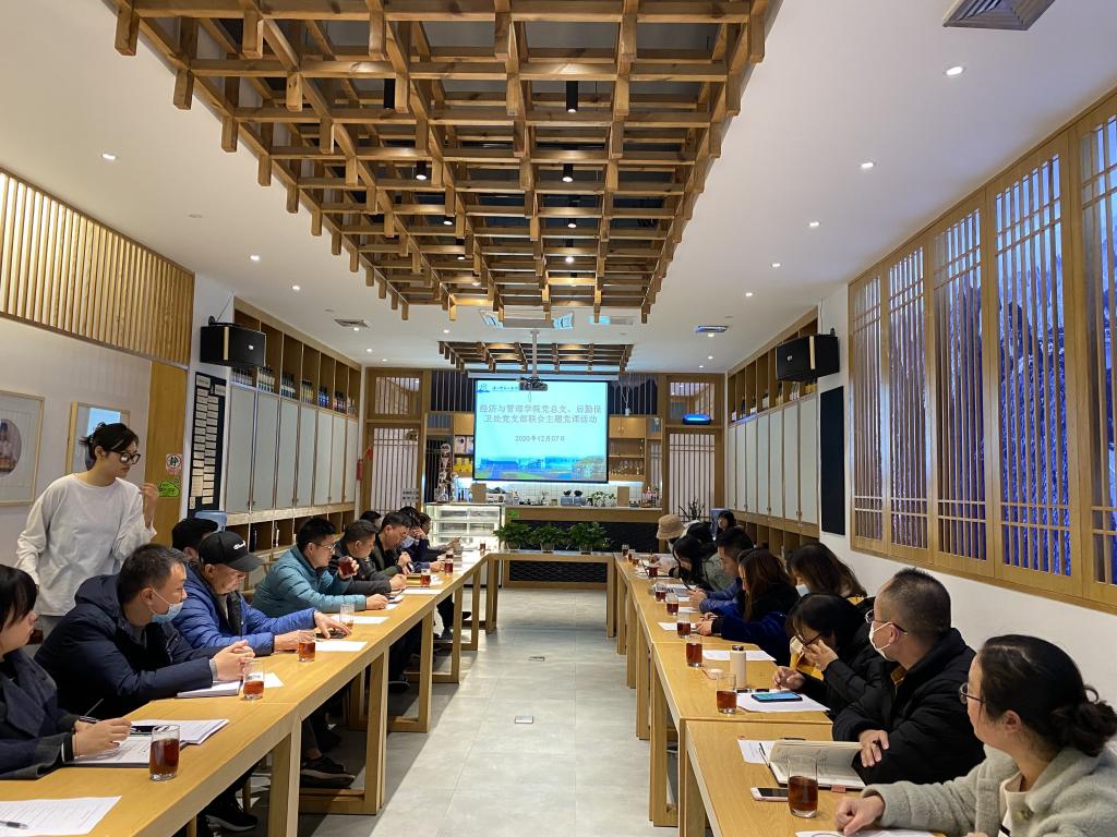 为深入学习贯彻党的十九届五中全会精神,推动部门业务工作开展,12月7日下午,经济与管理学院党总支和后勤保卫处党总支在酒水品鉴与茶艺实训室开展联合主题党课活动。经济与管理学院党总支书记甘华成、副书记韩磊以及学院教师党员代表,后勤保卫处处长李久华、副处长付健、秦家荣以后勤保卫处党支部全体成员参加了此次活动。会议由李久华主持。