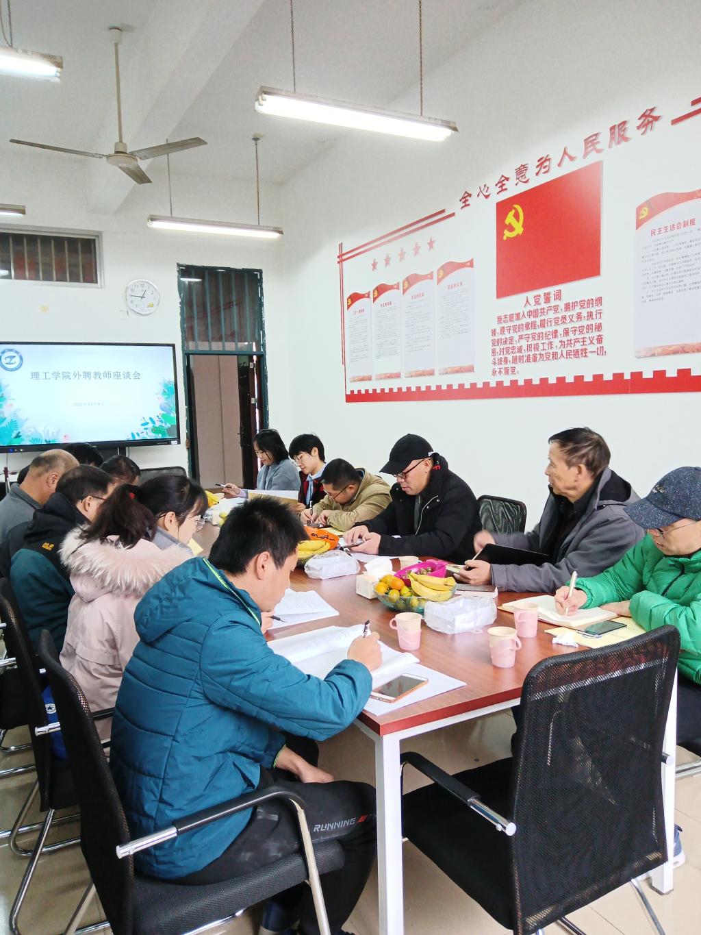 12月8日中午,理工学院在党员活动室召开了外聘教师座谈会,理工学院领导班子、高等数学教研室主任、教学秘书以及全体外聘教师参加了会议。