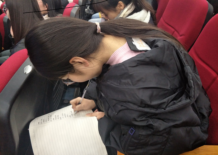 林艳校长通过自身丰富的教学经验和对小学教学管理的深刻理解,用语文、数学、英语、科学等学科优秀教学设计进行范例说明,从说课准备、说课内容、说课注意事项等清晰明了为小教的同学们展示小学课程内有关课程的说课相关技巧。既有来自一线的案例展示也有说课依据。讲座中学生认真听讲,用心做笔记,在林艳校长的演讲结束后,学生积极踊跃就说课的重点、课堂教学技巧、对教师职业的期待等提出自己的问题,与校长进行进一步的交流。讲座在师生热络的氛围中圆满结束。