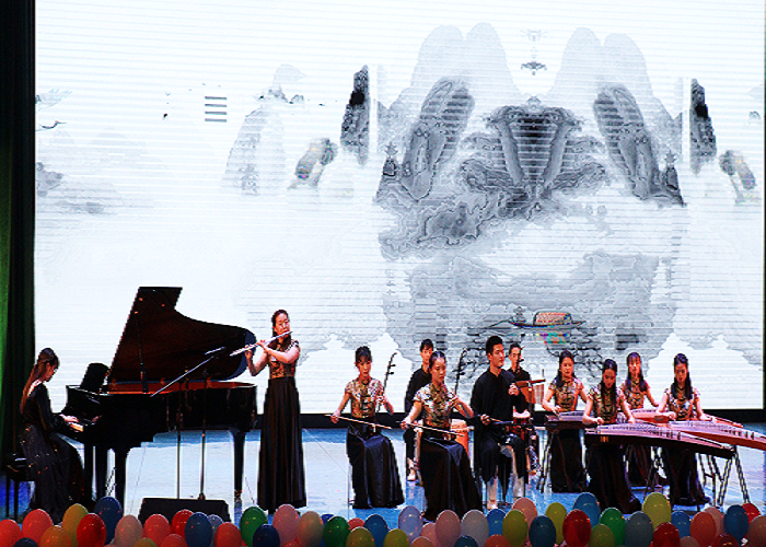 诗歌朗诵《有这样一群人》、藏族舞蹈《戈壁沙丘》、女声独唱《鹿be free》、相声《我要讲规矩》共同开启晚会第三篇章“新时代”,十九届五中全会的顺利召开,“十四五”规划的通过,在践行习近平新时代中国特色社会主义思想的道路下,我们雄赳赳、气昂昂,以更加矫健的步伐迈向新的征程,引起大家广泛共鸣。晚会最后,在张宗贺老师唢呐独奏《打枣》、钢琴独奏《蝴蝶》、乐队演奏《没有理想的人不伤心》的精彩表演中,向同学们发出奋斗青春、拼搏未来倡议,为晚会落幕,画下圆满句号。
