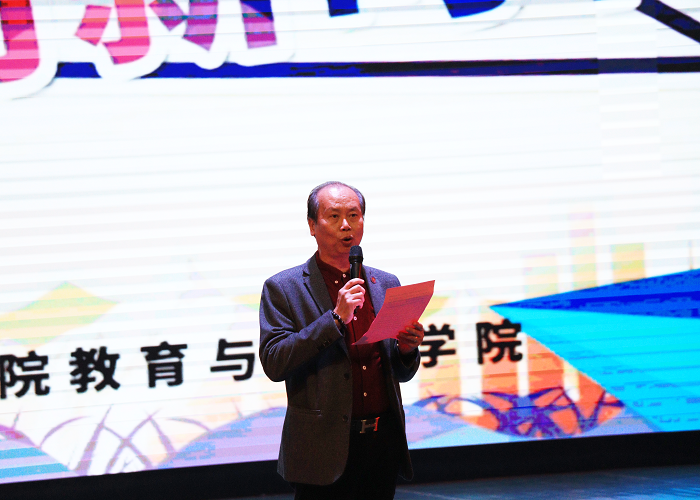 院长彭超在会上致辞,他首先表达了对教育与音乐学院师生一年来辛勤努力的感谢及美好祝福,他以“战疫”“拼搏”“祝福”三个关键词,回顾了学院2020年的建设与发展。疫情之下,教育与音乐学院全体师生在行动,传递正能量,通过爱心捐赠,做志愿者,创作抗疫歌曲,书法剪纸,心理援助等不同形式为全校、全国不同群体送去温暖,为抗疫助力,充分彰显了漓江学院“向学 向善 自律 自强”的校训精神;他鼓励全院师生锐意进取,在新的一年里,团结一致,倍加努力,乘胜前进,去夺取更大胜利!“祝福”全体师生事业精进、学业精进、生活美好!