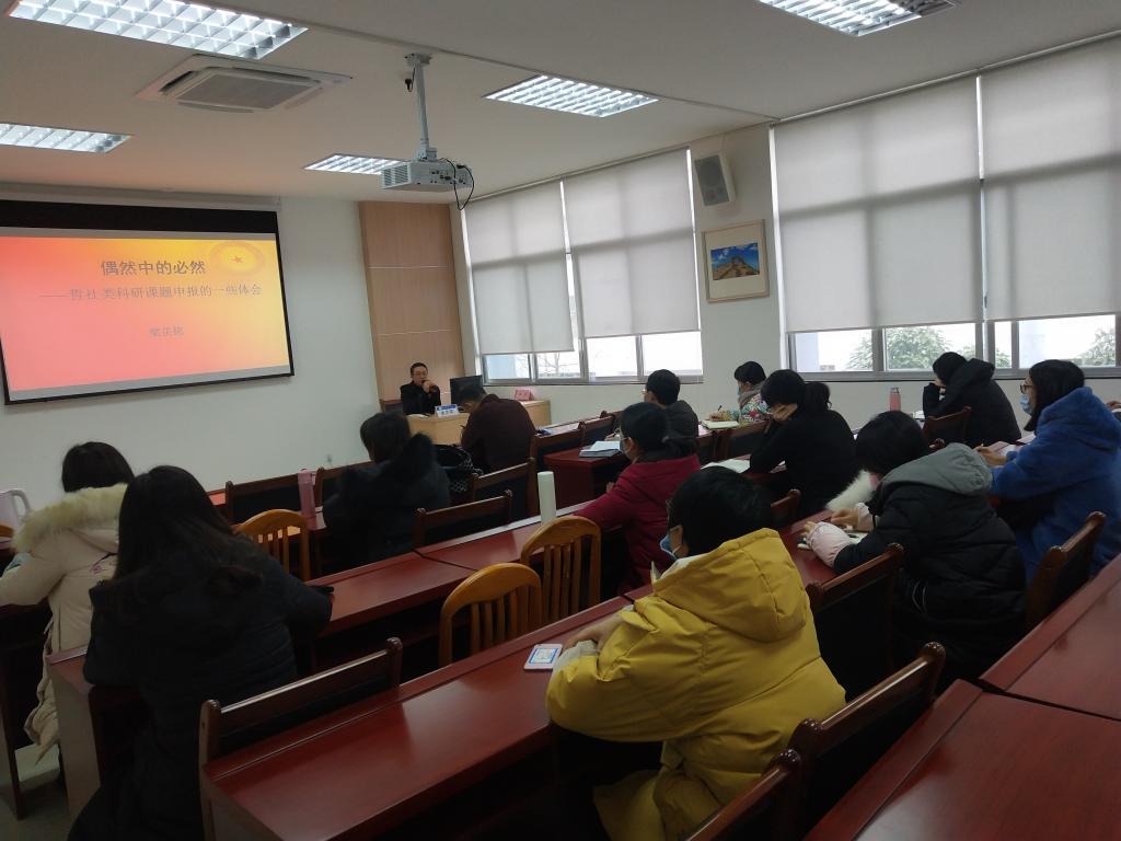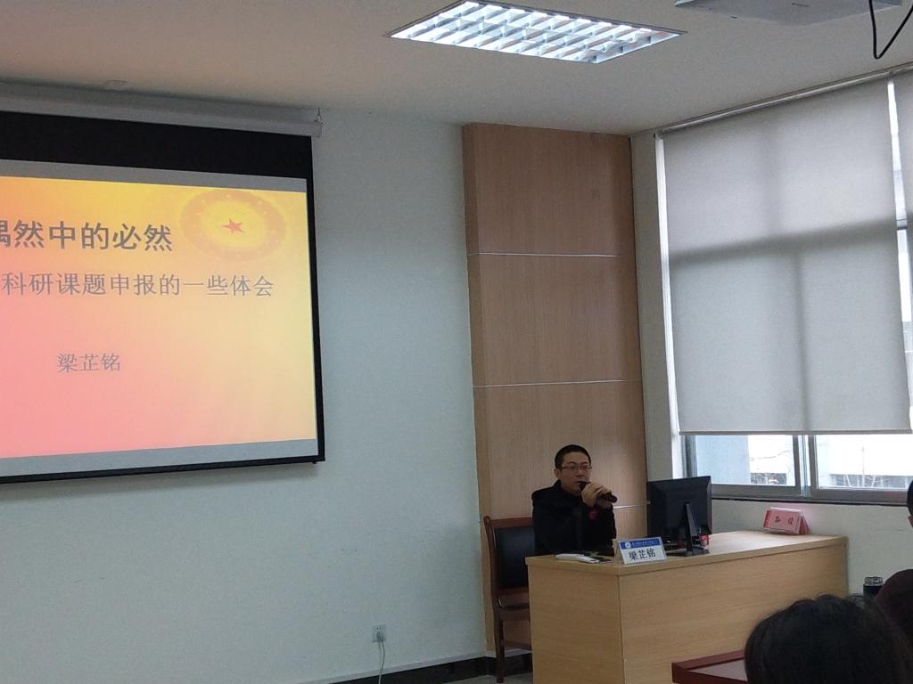 图:梁芷铭教授为我校思政课教师作“青年教师科研项目申报”专题讲座