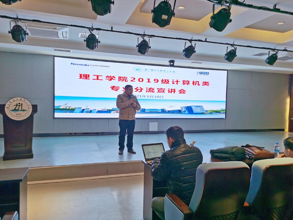 为有序开展大类招生专业分流工作,1月10日上午,理工学院/东软软件学院/中软国际大数据产业学院在至善讲堂召开了2019级计算机类专业分流宣讲会。学院领导、专业负责人和企业负责人、班级辅导员及2019级计算机类的全体学生参加本次会议。会议由副院长刘亮龙主持。