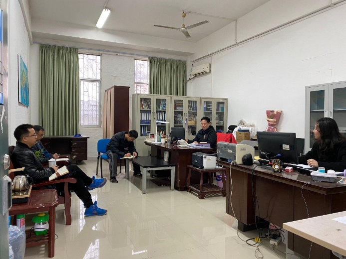 图:传媒学院领导班子成员讨论2021年度春季学期工作相关事宜