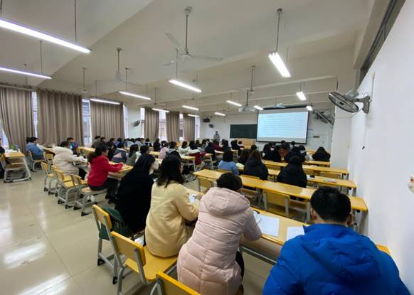 上午第一节课,语言学郭玉贤教授为2019级汉语言文学5班学生进行《修辞与语用》的第一次授课。郭教授将修辞和语用与学生的身边事相结合,用生动有趣的例子为学生们传达“生活处处皆修辞”的理念。越南语专业梁姗姗老师为2019级越南语专业学生进行《基础越南语3》的第一次授课。梁老师与学生积极互动,从越南民俗到中国春节民俗,将越南语单词语法融入到妙趣横生的生活场景中,使课堂更加高效生动。同时,进入课堂听课的相关人员针对教师的授课进行了记录和指导,并对教师的教学方法、课堂互动等进行反馈,给予了积极肯定。