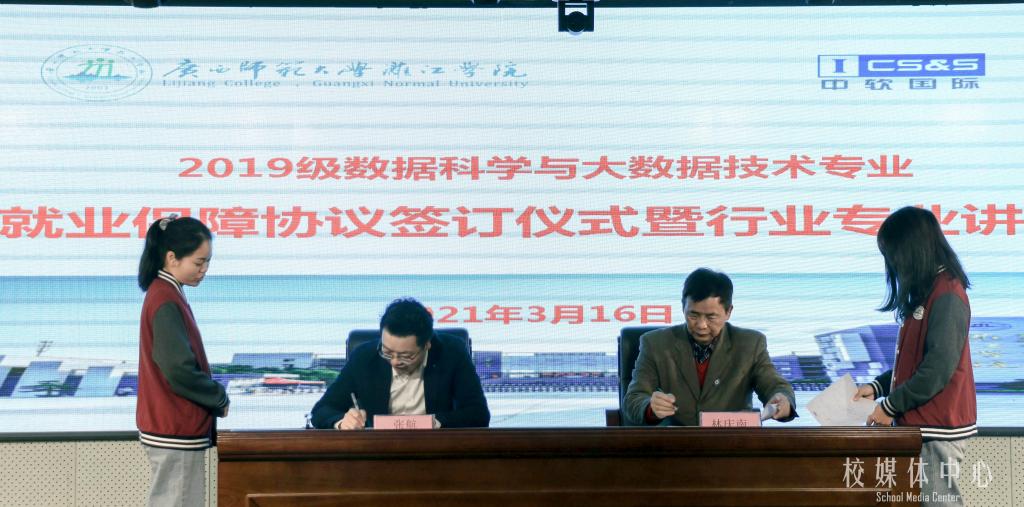 3月16上午,理工学院于至善讲堂举行了理工学院/中软国际大数据产业学院2019级数据科学与大数据技术专业就业保障协议签订仪式暨行业专业讲座,中软国际教育科技集团华南区总经理张航、副总经理汪建新、深度合作运营经理卢钊勤,理工学院院长林庆南、党总支书记谢国榕、副院长刘亮龙、党总支副书记金云亮、教师代表以及2019级数据科学与大数据技术专业全体同学参加了本次开班仪式。