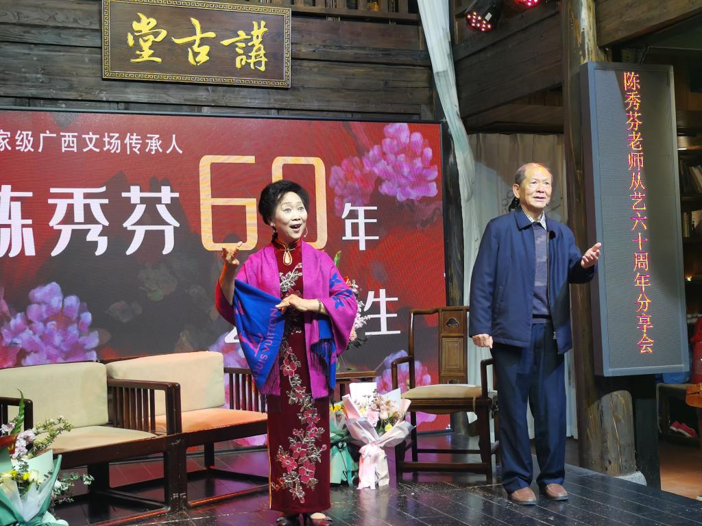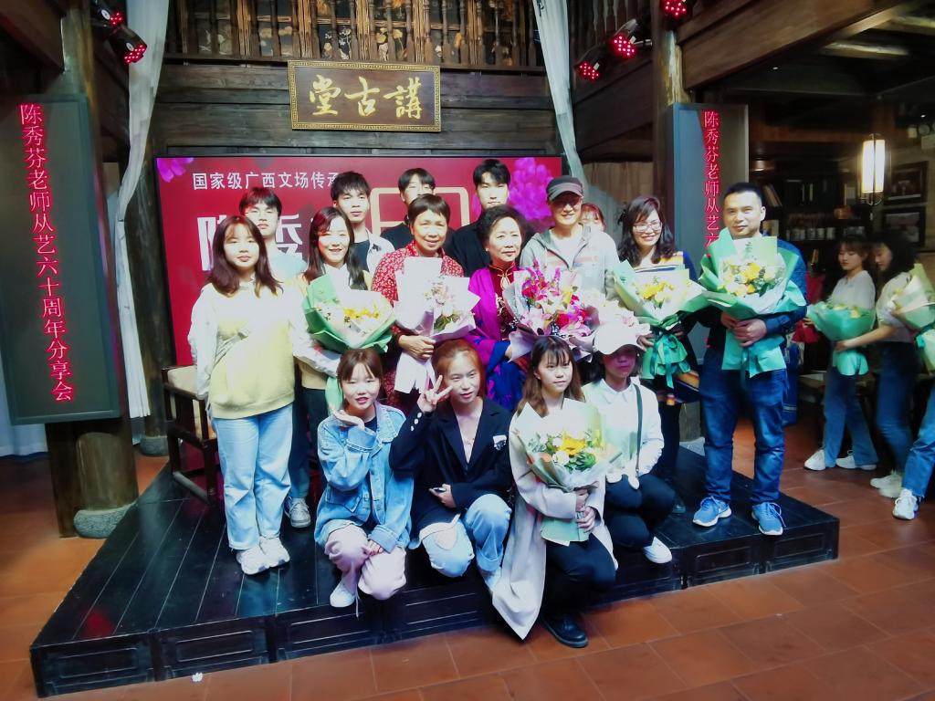 3月28日,我校师生代表赴东西巷讲古堂参加国家级非物质文化遗产广西文场代表性传承人陈秀芬从艺60周年分享会。在分享会上,师生聆听了各届对陈老师对广西文场艺术的卓越贡献,观赏了陈秀芬和诸葛济两位文场艺术大师的《双下山》的现场表演以及陈老师各位弟子和粉丝精彩的文场表演。陈老师不仅表演技艺高超,而且还经常深入大中小学、城镇之中,传授和宣传文场艺术,不愧为“德艺双馨”的艺术家。
