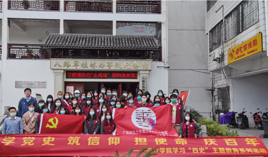 4月8日,学生党支部组织50余名党员和积极分子参观了八路军桂林办事处纪念馆。在讲解员的带领下,参观了纪念馆的各个展厅。八路军桂林办事处作用影响很大,统一领导文化抗战和武装斗争,促使数以千计的文人墨客云集桂林,各种文化团体应运而生,为抗日战争胜利和世界反法西斯战争的胜利作出了重大贡献。支部成员通过实地走访,对历史有了更进一步的学习,并从中寻找初心,吸取力量,增强责任感与使命感。