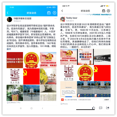 图:党员在自媒体发布动态表达对烈士的纪念和哀思