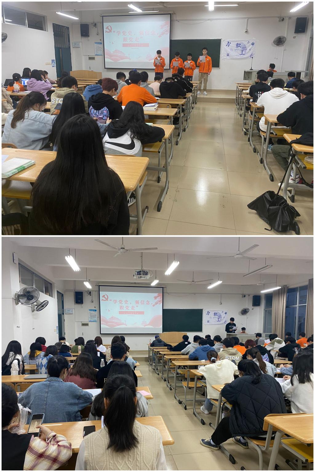 辅导员金云亮讲述了“小萝卜头”宋振中在狱中渴望自由,渴望学习的故事。他指出,历史是一面镜子,它照亮现实,也照亮未来,学习党的历史,了解我们的过去才能看清前进的方向。党史记录着新中国从无到有,从小到大,从弱到强,从一个胜利走向另一个胜利,中国带领人民创造了一个又一个辉煌,一个又一个奇迹,这其中的经验和智慧无不凝结于党的历史。
