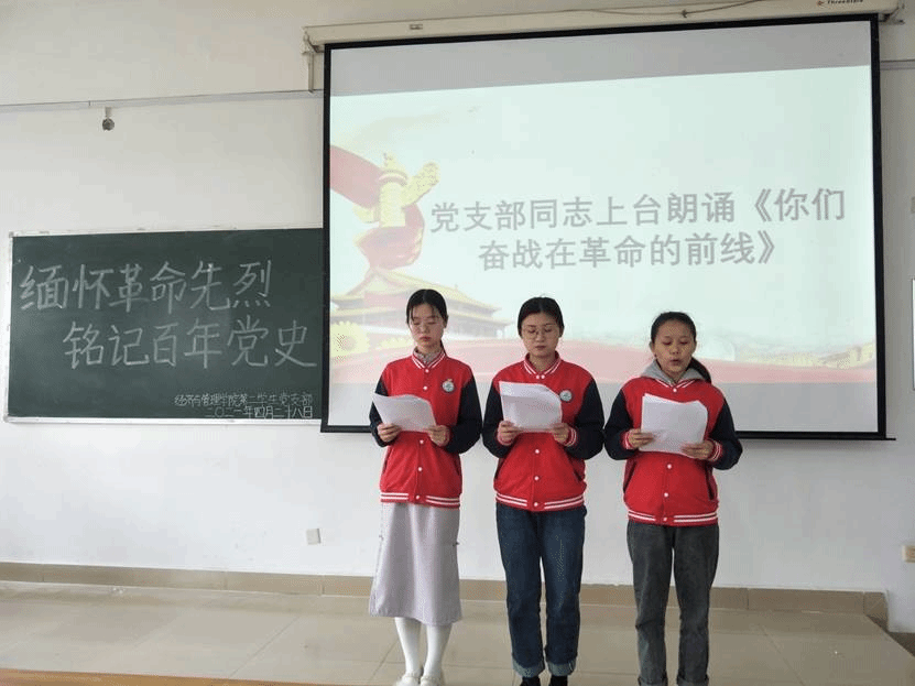 党支部成员上台朗诵诗歌《你们奋战在革命前线》