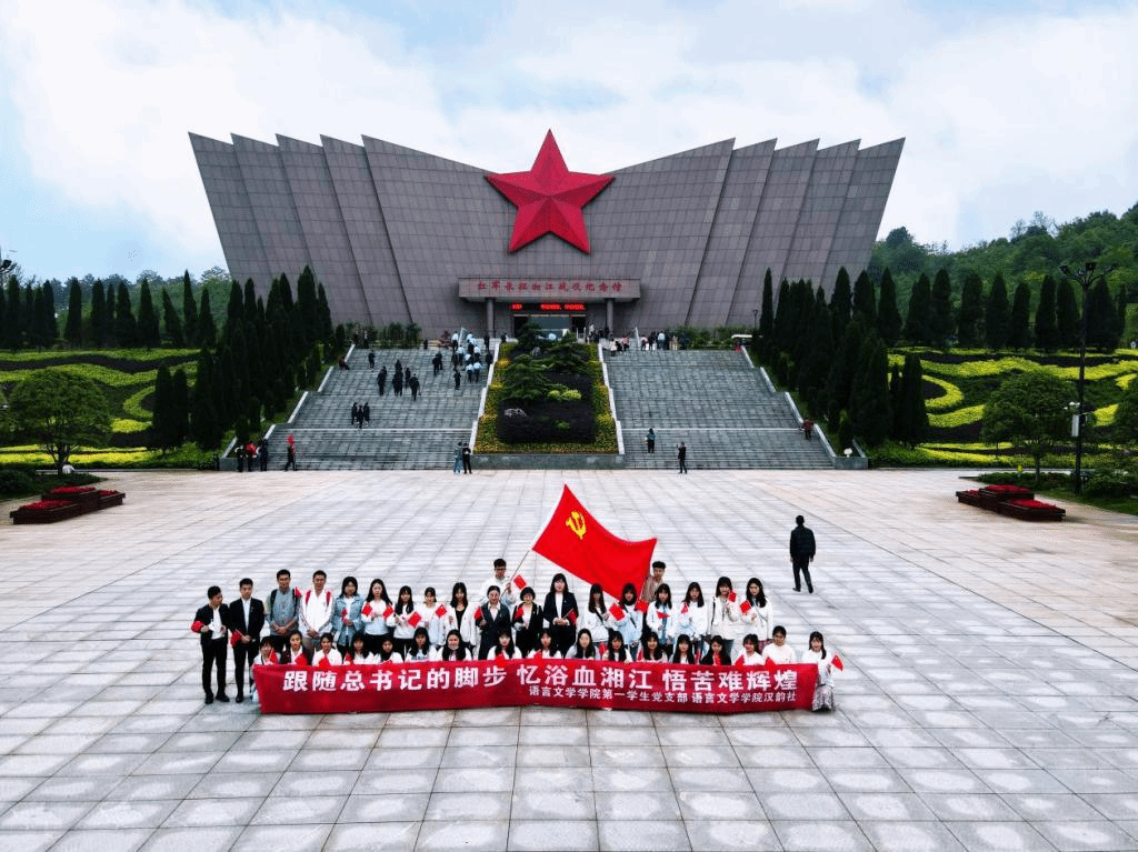 4月28日上午,语言文学学院第一学生党支部来到广西桂林全州县,走进红军长征湘江战役纪念馆,开展“跟随总书记的脚步 忆浴血湘江 悟苦难辉煌”主题党日活动,跟随总书记学党史并学习习近平总书记湘江战役重要讲话精神。学生党支部书记李晓蕾、王亮,副书记覃倩云等党员师生参加本次活动。
