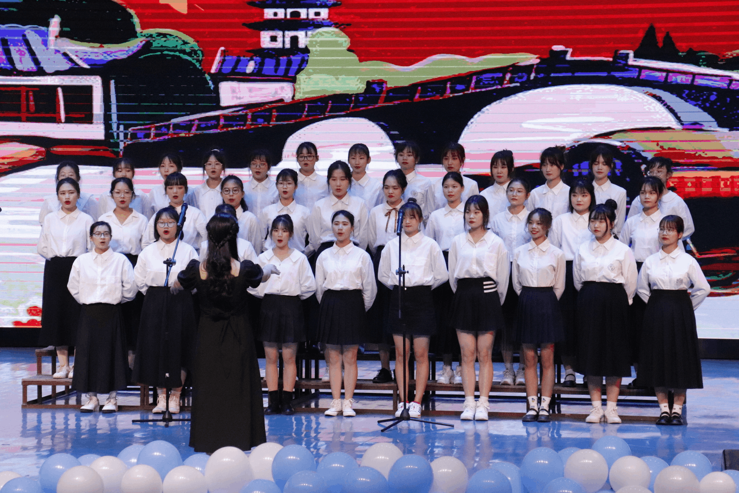 本次晚会将带领大家回顾党的光辉历程,讴歌党的丰功伟绩,铭记党的恩情,践行党的宗旨,激励广大师生坚定理想信念、忠诚履职尽责、勇于担当作为。首先,晚会在充满活力的团学开场舞中拉开了序幕。随后,朗诵《祖国啊,我的祖国》、礼仪队走秀《霓裳羽衣》、朗诵《百年》等节目陆续登场,展现了我院学子良好的精神面貌,营造了浓厚的校园文化氛围。