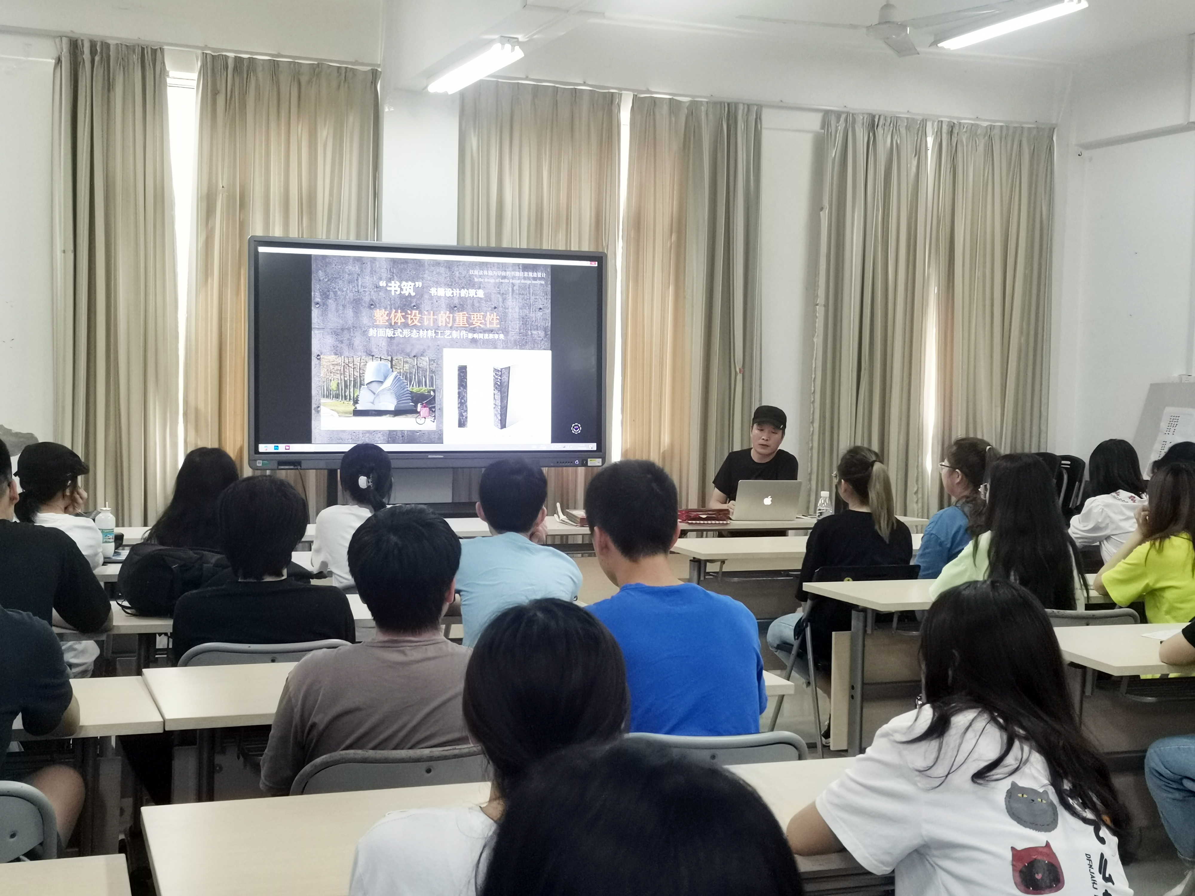 5月27日下午,桂林旅游学院品牌设计工作室主任杨鹏广老师受邀至设计学院举办了一场主题为“书筑”的书籍创意构造专题讲座。设计学院视觉传达教研室全体教师以及2018级全体同学们聆听了这场讲座。