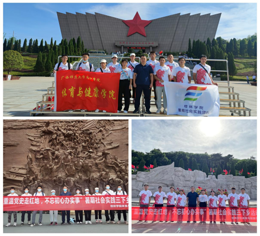 7月9日至10日,体育与健康学院“百年红色体健人”团队来到广西桂林全州县开展暑期“三下乡”社会实践活动。活动分为两部分:一是走进红军长征湘江战役纪念馆,重温长征史诗,接受红色教育;二是“我为群众办实事”开展居家健身及运动康复宣传。