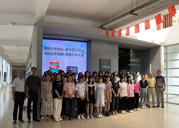 赓续百年初心,担当育人使命,书绘心中信仰,展现小教风采。三尺讲台系国运,今年是建党100周年,教育与音乐学院深刻理解学习党史的意义,把思政元素融入专业课程中。经过小学教育教研室精心筹备,学院的大力支持,2021年9月16日下午,教育与音乐学院在嘉善楼一楼美术展厅隆重举行了小学教育《校园应用美术》《汉字书写技能》课程优秀作品展开幕。学校党委副书记、纪委书记、副校长邓志平、教学科研处处长杨杰夫应邀莅临开幕式,教育与音乐学院院长彭超、党支部书记周杰,副书记熊云云、副院长黄小玲、指导老师季小茸、葛亮及小学教育专业的部分师生共同出席了开幕式。