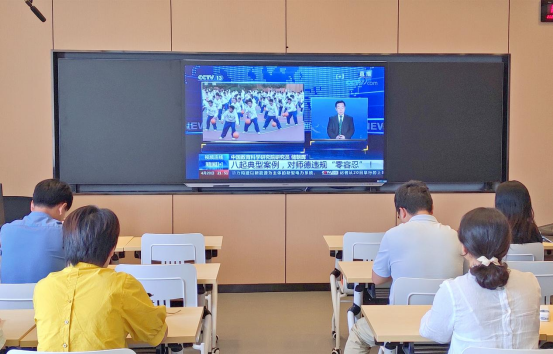 与会人员一起聆听观看中国共产党百年述职报告,一同学习习近平总书记“七一”重要讲话精神。党支部书记杨杰夫希望大家感悟思想伟力,汲取智慧力量,知敬畏、存戒惧、守底线。结合本职工作,将“七一”讲话精神转化为推动学校教育教学发展的动力,助力建设规范高效、特色鲜明、质量与就业双优的国有民办城市型大学。