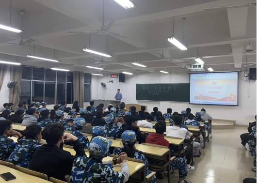 活动伊始,党总支副书记郭时骏老师和大家分享了自身对于党员党性的理解,他通过讲述无产阶级革命家方志敏的故事,激发同学们的爱国主义情怀和对革命烈士的崇敬之情。随后,郭老师就大学生如何入党和入党程序给大家进行讲解,鼓励同学们撰写入党申请书,积极向党组织靠拢。