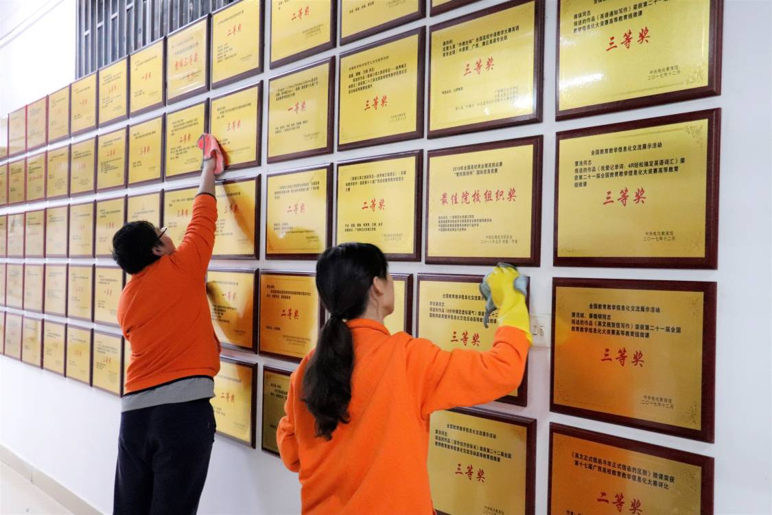 劳动开始,同学们手拿清扫工具,分成各个小组前往教学楼、办公室、宣传栏等校内主干道进行清理。分工明确,干劲十足,捡拾纸屑、饮料瓶、烟头等垃圾,尤其是对于一些隐藏在草丛、树林里的垃圾,进行细致的处理。劳动过程中,同学们有序进行,互相协作,充分发扬不怕脏、不怕累的精神,把绿化带垃圾、卫生死角一一清理干净,集中整治乱堆、乱放、乱扔的杂物,为净化校园环境贡献了自己的一份力量,校园主干道上焕然一新。在劳动中,黄幸津老师指出实践活动要把党史学习教育和劳动教育有机结合,让党史学习教育在劳动中内化于心、外化于行。