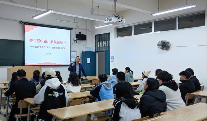 为进一步强化党史学习教育成果转化为实际行动,引领青年大学生学习习近平总书记在中国共产党成立100周年纪念大会上的重要讲话(以下简称“七一讲话”)精神,感受百年奋斗历程,不断在中华民族伟大复兴的道路上砥砺前行。马克思主义学院于11月9日晚举行习近平新时代中国特色社会主义思想青年学习研究会学习沙龙。邀请张常永院长为同学们解读了“七一讲话”重要精神,解答同学们在学习过程中的重点、难点问题。