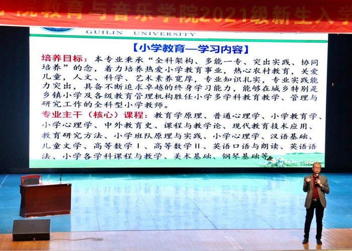 为帮助2021级新生们了解所学专业及就业前景,充分认识学习规划的重要性。11月9日晚,教育与音乐学院在弘善讲堂开展大学生涯规划专题讲座。由院长彭超主讲,团总支书记余华、新生辅导员王越及2021级全体新生到场参加。