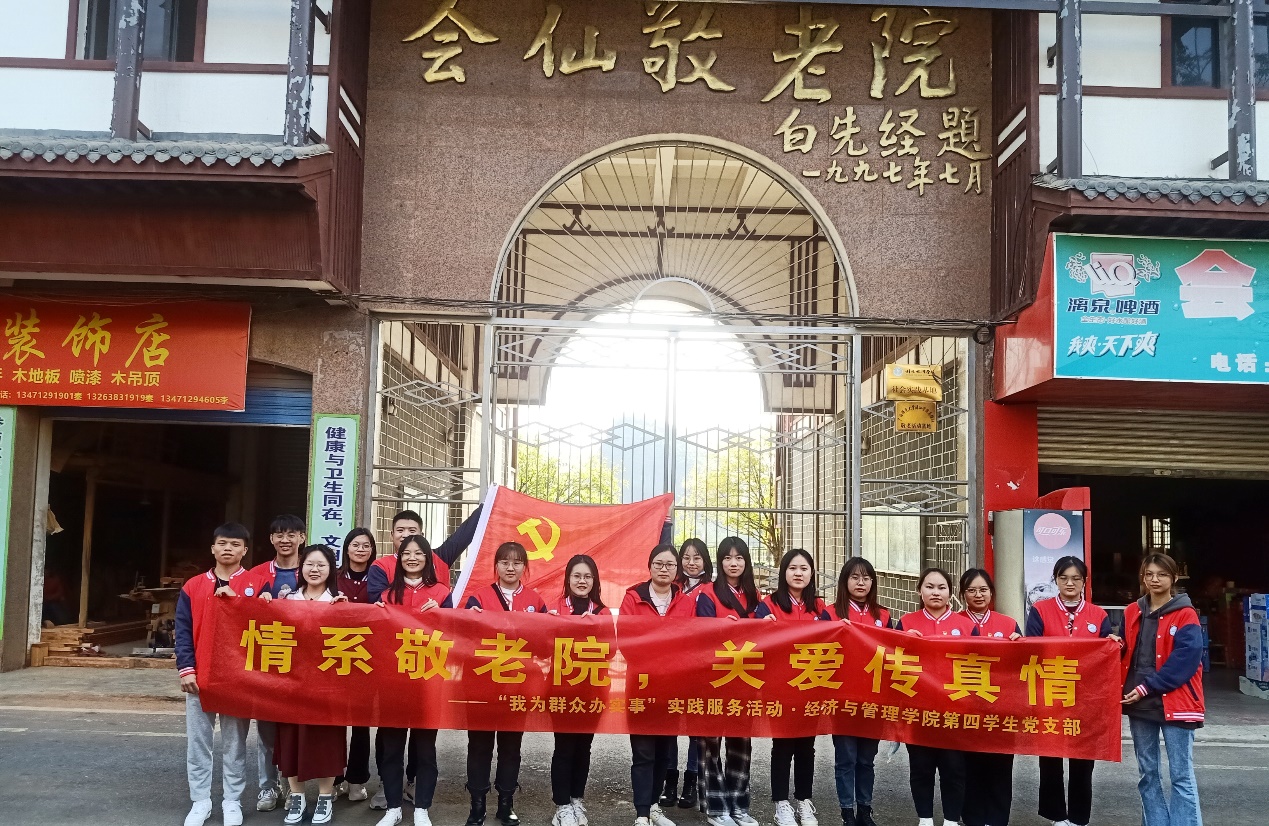 为学习贯彻习近平新时代中国特色社会主义思想,深入推进党史学习教育“我为群众办实事”实践活动,强化党员同志公民意识和为民情怀,继承中华民族敬老爱老的优良传统,11月11日下午,经济与管理学院党总支前往会仙敬老院开展以“情系敬老院,关爱传真情”为主题的志愿服务党日活动。党支部书记郝环一及第四学生党支部成员集体参加此次活动。