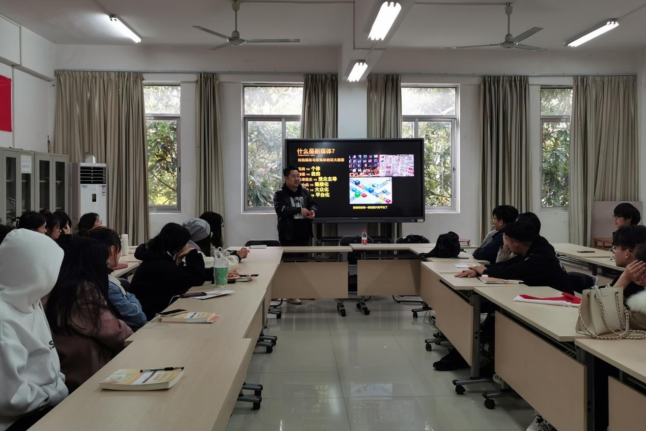 本次讲座的主讲专家冯登辉老师,是桂林旅游学院艺术设计学院新媒介工作室主任,艺术学在读博士,桂林乐天文化有限公艺术总监,同时也是资深的媒体人、设计师、电影制片人、导演、摄影师,在影像创作上有着丰富的经验。此次讲座中,冯老师向同学们讲解了新媒体的概念以及传统媒体与新媒体的巨大差别,结合成功的新媒体影像案例和自身创作经验,生动地说明了影像创作的要点,并对内容运营中重要的短视频变现及平台机制等环节做了详细分析。整场讲座气氛活泼,同学们积极提问,主动交流,冯老师耐心地对学生提出的学习、创作方法等方面的问题进行了答疑。