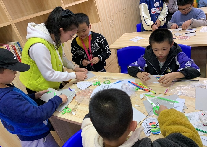 图为小朋友专心制作小蜘蛛