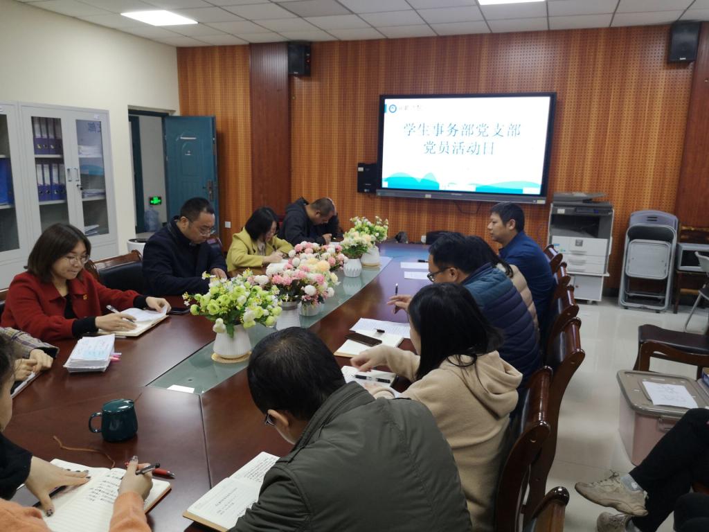 11月18日上午,学生事务部全体党员、预备党员、入党积极分子共20余人在知善楼8102会议室开展了以“学习贯彻中国共产党第十九届六中全会精神”为主题的党日活动。会议由学生事务部党支部书记蒋远宏主持。