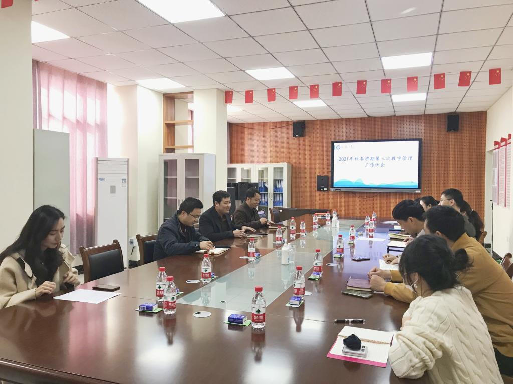 11月18日上午,2021年秋季学期第三次教学管理工作例会在知善楼8312会议室召开,教学科研处相关负责人、各二级学院教学副院长参加会议。