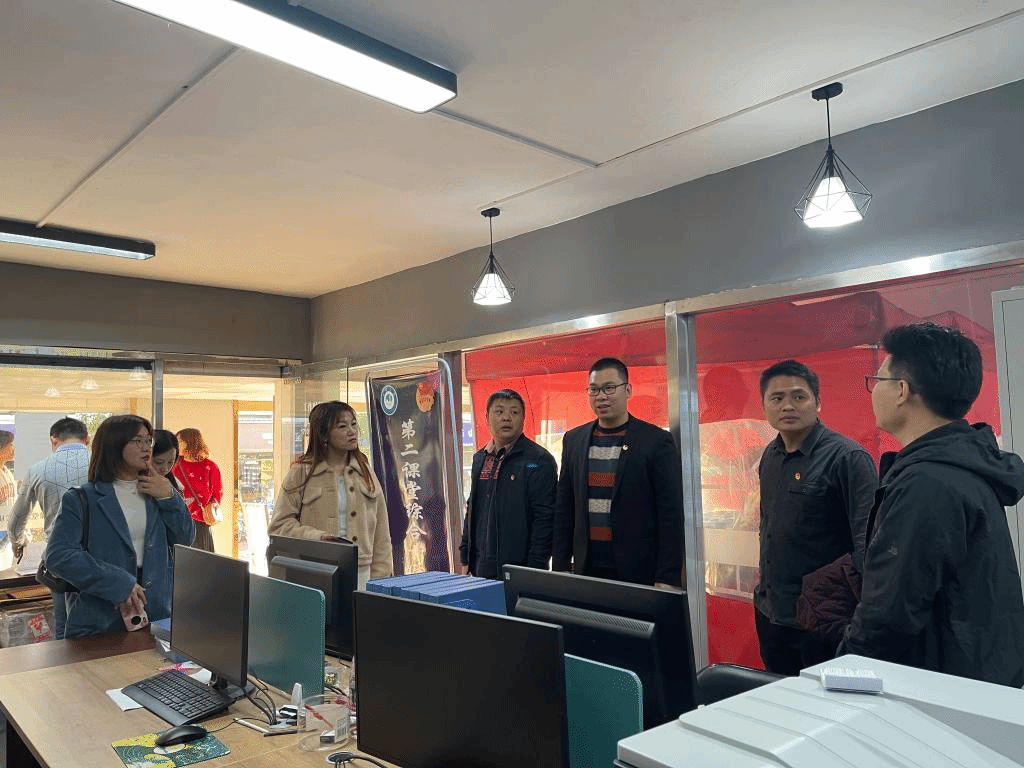 会后,考察组一行在我校团委老师及相关负责老师的陪同下,一同走访参观了我校团委办公室、大学生创新创业实践基地、第二课堂综合素质认证中心等地。
