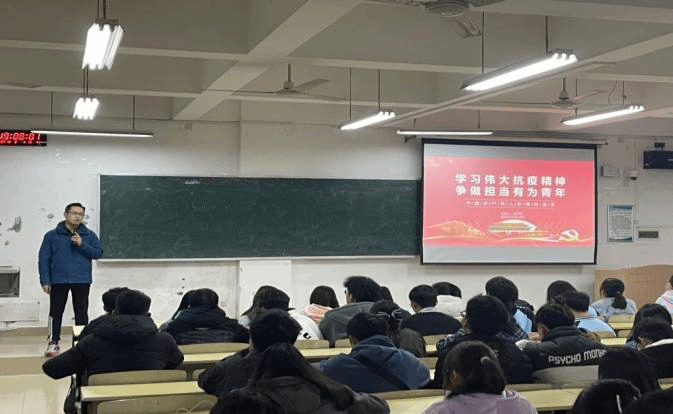 讲座中,主讲人宋丹阳老师利用多媒体课件、课堂互动的方式围绕中国共产党人的精神系谱,抗疫精神以及争做担当有为的时代青年三个部分进行讲解。宋丹阳老师在讲解中指出,习总书记认为在一百年来,我们党在不同历史时期围绕完成不同历史任务进行的伟大实践中,不断弘扬伟大建党精神,形成了一系列伟大精神,“构建起中国共产党人的精神谱系,锤炼出鲜明的政治品格”。伟大的抗疫精神就是新时代中国共产党形成的精神谱系的一部分,充分展现了中国精神、中国力量、中国担当。抗疫中涌现的许多英雄都是青年学生的学习榜样,广大青年要学习伟大的抗疫精神,从爱国、团结、奋斗、担当四个方面争做新时代有为青年,为实现中华民族伟大复兴做出应有贡献。