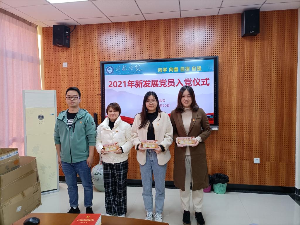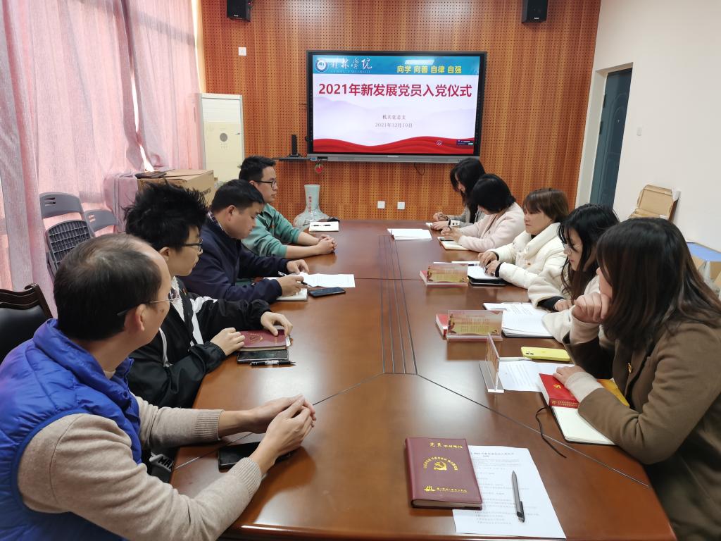 在中国共产党成立100周年之际,为增强党员政治意识,坚定理想信念,12月10日上午,机关党总支组织3名新发展党员在知善楼8207会议室举行了入党仪式,机关党总支全体委员、组织员、机关部分党支部书记参加此次仪式,本次仪式由机关党总支委员林榆峰主持。