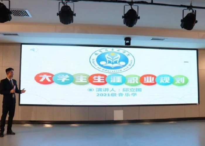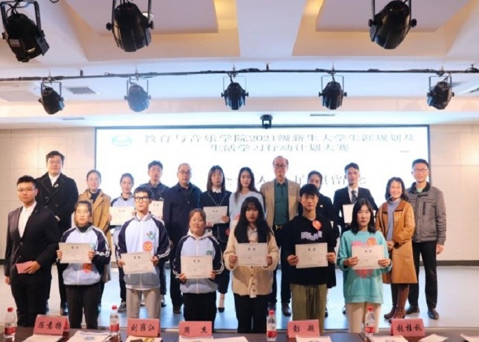 为促进2021级新生更加深入了解大学生活,把握各阶段学习特点,正确认识自我,立足自身情况,规划好大学生活并强化落实,12月10日晚,教育与音乐学院党总支、青协教音分会在至善讲堂联合举办了“2021级新生大学生涯规划及生活学习行动计划”大赛。院长彭超、总支书记周杰及部分辅导员老师出席,2021级新生代表参加了比赛。