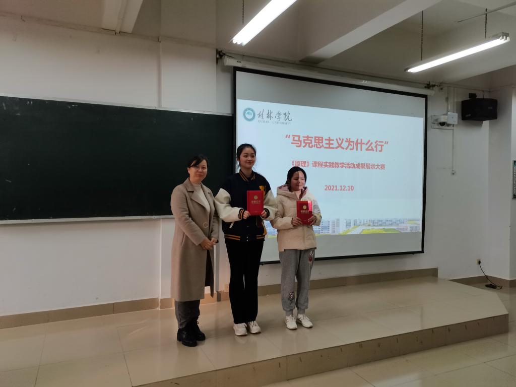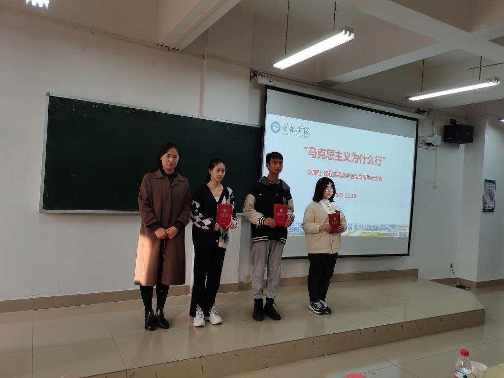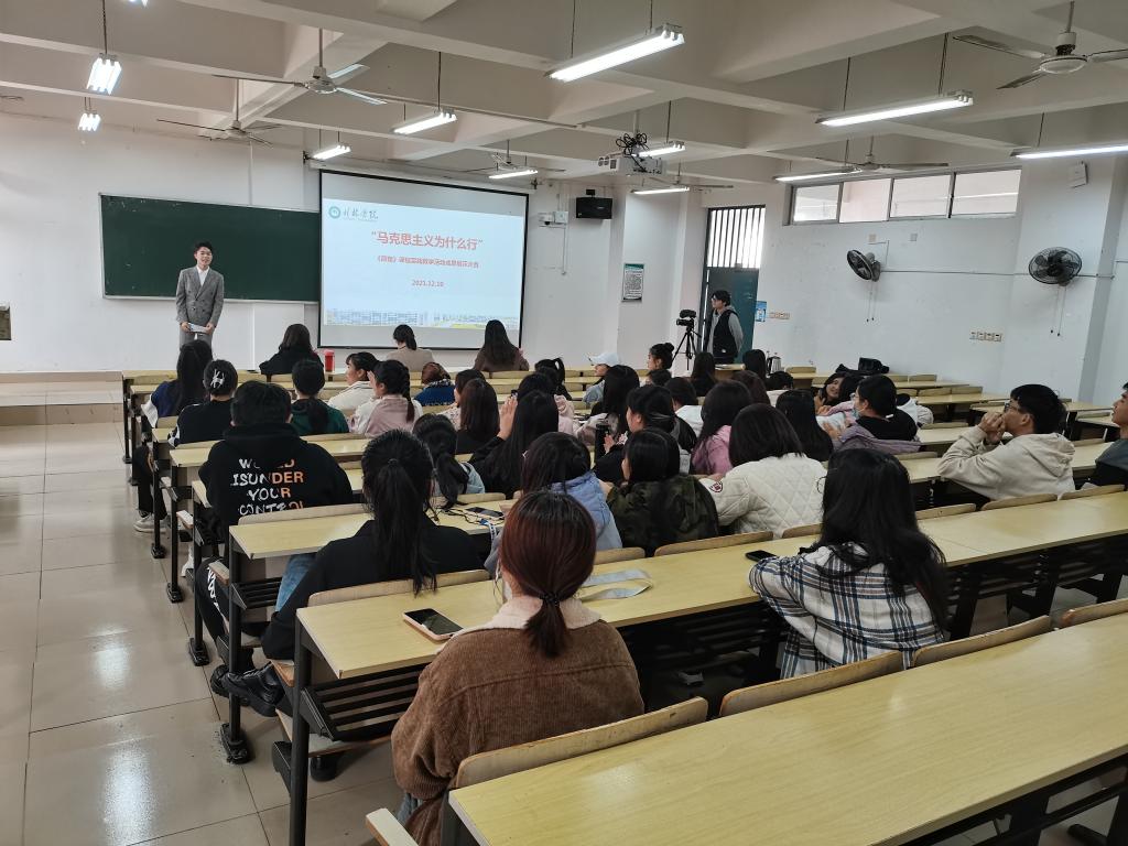 习近平总书记在庆祝中国共产党成立一百周年上的讲话中指出:“马克思主义是我们立党立国的根本指导思想,是我们党的灵魂和旗帜。中国共产党为什么能,中国特色社会主义为什么好,归根到底是因为马克思主义行!”马克思主义基本原理实践教学活动以“马克思主义为什么行”为主题,旨在采用大学生喜闻乐见的形式,激发学生的学习兴趣,让学生能全身心地投入学习,更充分地理解和掌握理论知识。为组织开展好课程实践教学活动,教研室结合课程性质和特点认真研究制定了实施方案——要求学生通过阅读课本内容以及课后参考文献,每个班级分为不同的小组,学生以小组为单位,分别选取自己感兴趣的内容以情景剧、小品等形式进行展示汇报。