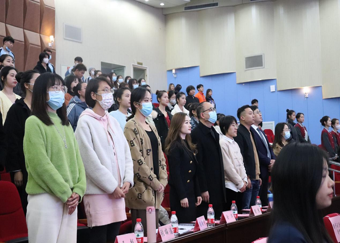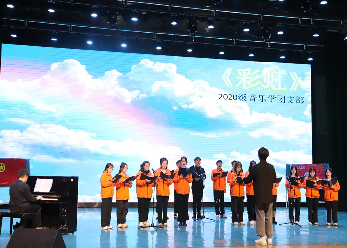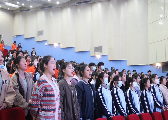 图:为全体共同齐唱中国共青团团歌《光荣啊!中国共青团》