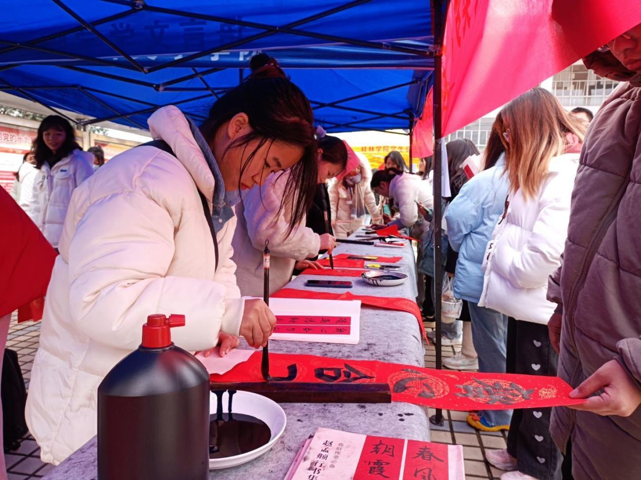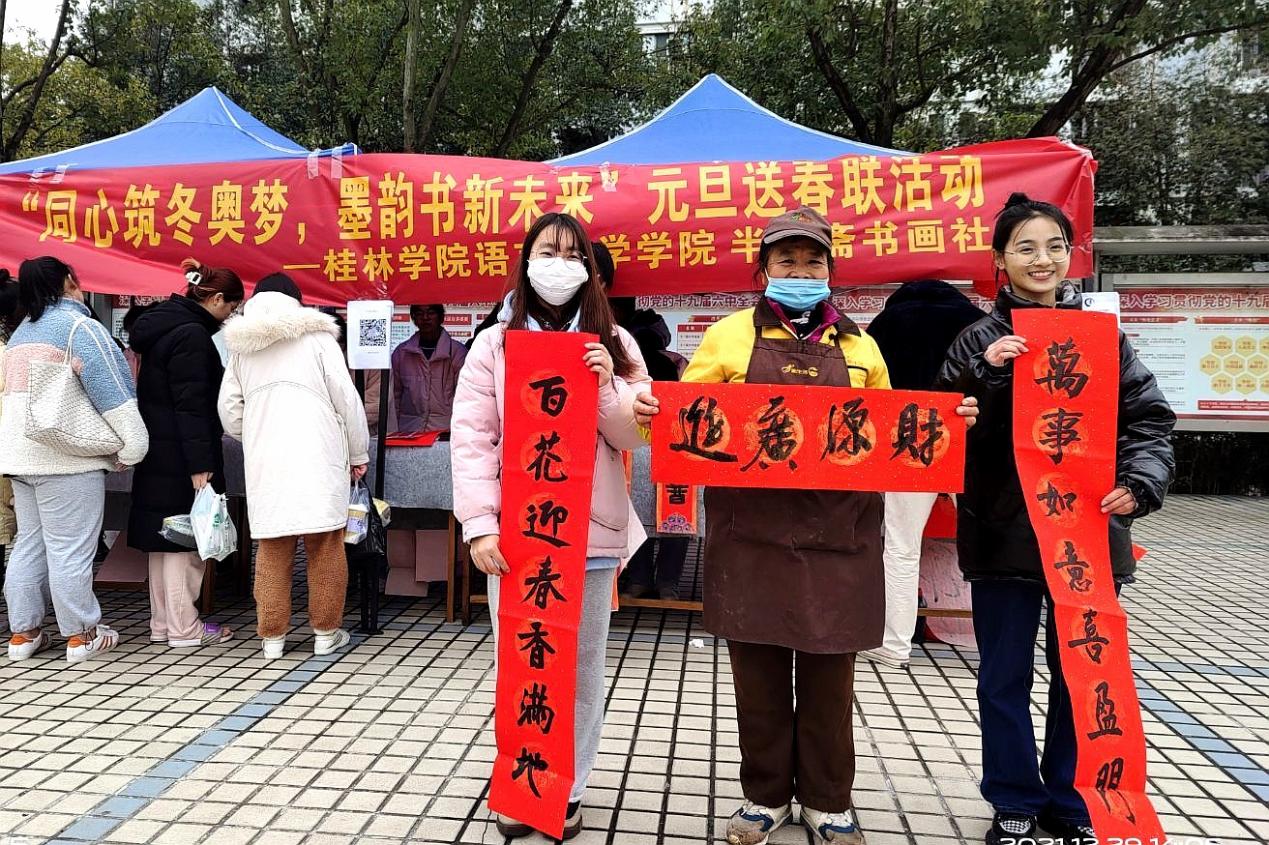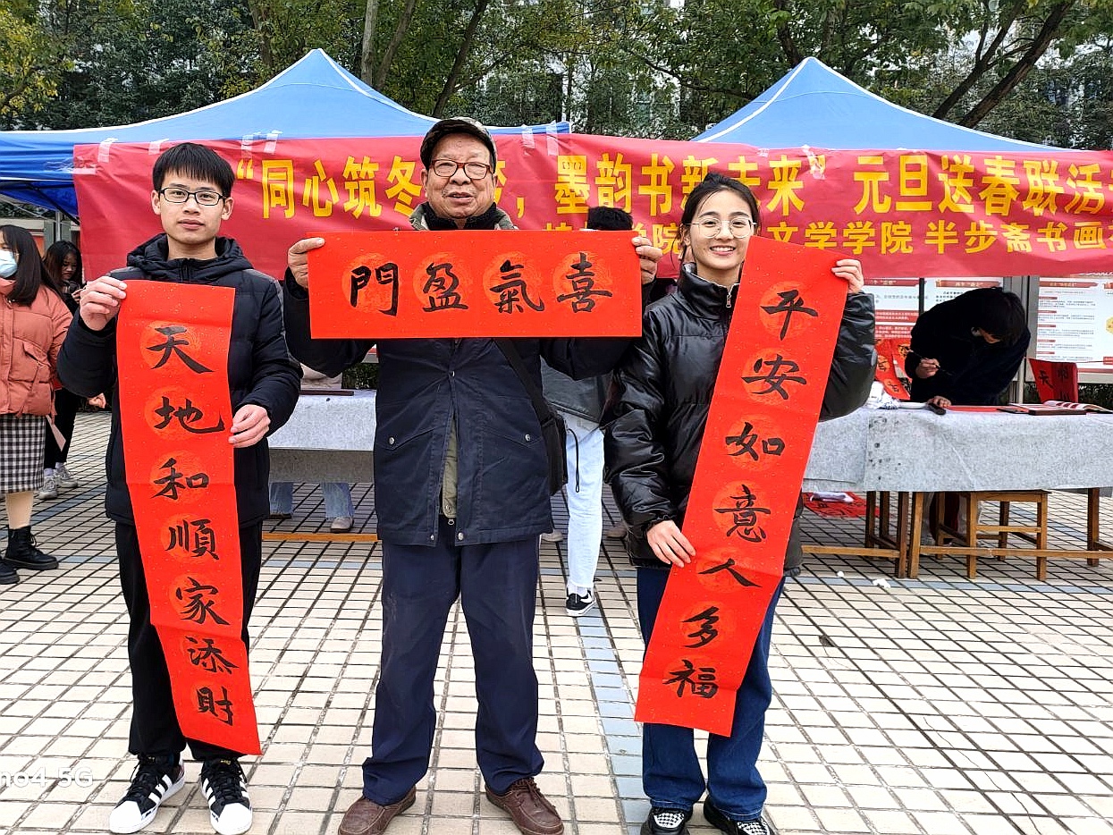 为喜迎2022年,助力北京2022年冬奥会和冬残奥会,弘扬优秀传统文化,增强校园欢乐祥和的节日氛围,进一步丰富校园文化,切实为群众办实事,12月29日中午,语言文学学院半步斋书画社在乐善广场举行了“同心筑冬奥梦,墨韵书新未来”为主题的元旦送春联活动。