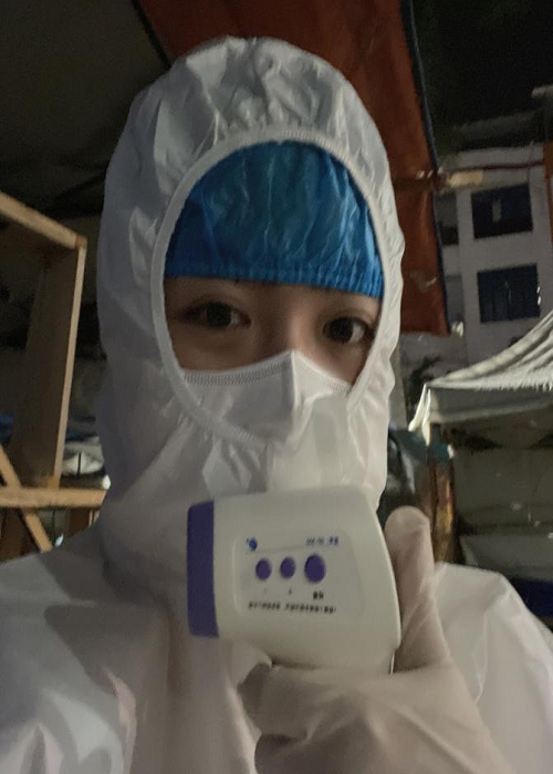 记得有一天下午太阳很晒很热,防护服很闷,出汗了不敢用手去擦,呼吸挺难受的,但是我不敢脱下防护服,因为一脱需要换一套新的,此时此刻,防护服对于我们来说“太珍贵了!”工作结束后,当脱下防护服的那一刻感觉自己有点体力透支了,汗流浃背的,但是我很满足也很快乐,我在用自己的方式守护我的家乡。