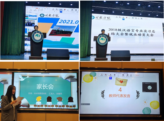就家长关注的学院教学等事宜,家长会上各教研室主任从学院成立背景、基本专业介绍、人才培养模式、学科专业方向、课程结构设置等多方面多角度进行了详细介绍,并表示语言文学学院作为学校较大的学院之一,专业师资力量雄厚,教学资源充足,学院将继续发挥专业优势,促进学生的成长成才,极大地增强了家长的信心。