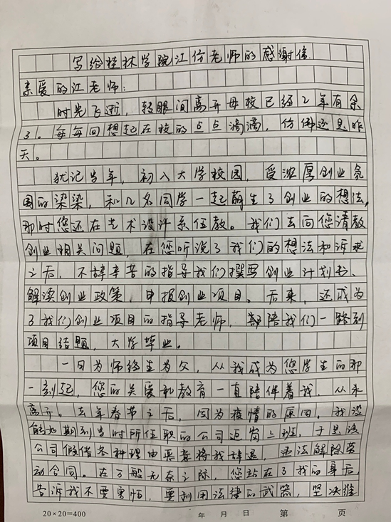 图:学生严仕林写给江仿书记的感谢信(1)