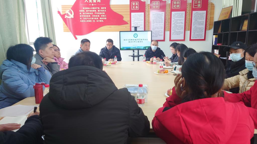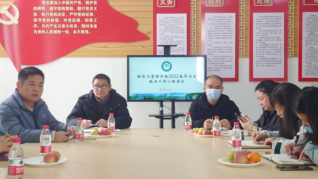 1月12日上午,经济与管理学院在3505党员活动室召开2022届毕业生就业工作会议。学院就业工作领导小组全体成员参加会议,会议由党总支副书记韩磊主持。