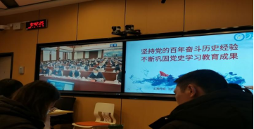 会议最后,陈俊杰书记就进一步巩固深化党史学习教育成果,提出了三点意见:一要强化政治站位,在学深悟透党的创新理论上再发力。二要巩固拓展党史学习教育成果,在推进党史学习教育常态化上再发力。三要强化责任担当,在持续开展“为民办实事”上再发力。希望各位老师要把党史蕴含的经验和智慧同推动工作结合起来,转化为攻坚克难、担当作为的务实举措,坚持不懈用党的创新理论武装头脑、指导实践,以时不我待、只争朝夕的精气神,奋力构建学院工作新格局,开创事业高质量发展新局面,以更加昂扬的精神风貌、更加优异的成绩迎接党的二十大胜利召开。
