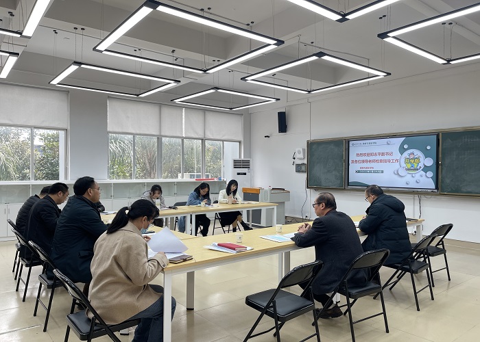 走访宿舍之后,检查组一行人来到会议室,听取教育与音乐学院的开学工作汇报。在汇报会上,学院党总支书记周杰代表领导班子向检查组汇报了开学工作的布置情况和开学前的准备情况,并汇报了2022年的学院工作要点,重点汇报了春季学期的工作安排。随后学院其他领导班子成员分别汇报了学生报到以及防疫情况,教学安排、教师到岗、教材发放情况以及专业评估的开展情况。彭超院长对大家的汇报做了补充说明。