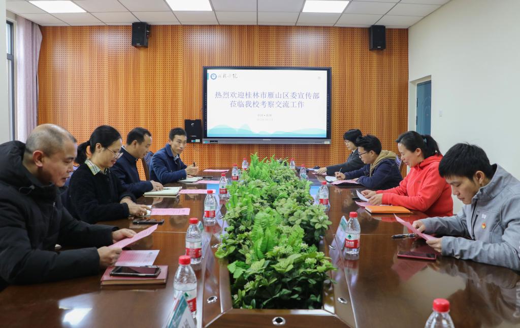 3月22日,桂林市雁山区委常委、宣传部部长陈伦元一行5人来我校调研交流宣传工作。学校宣传部负责人热情接待了陈伦元一行,语言文学学院、校团委相关负责人及宣传部工作人员参加了座谈。