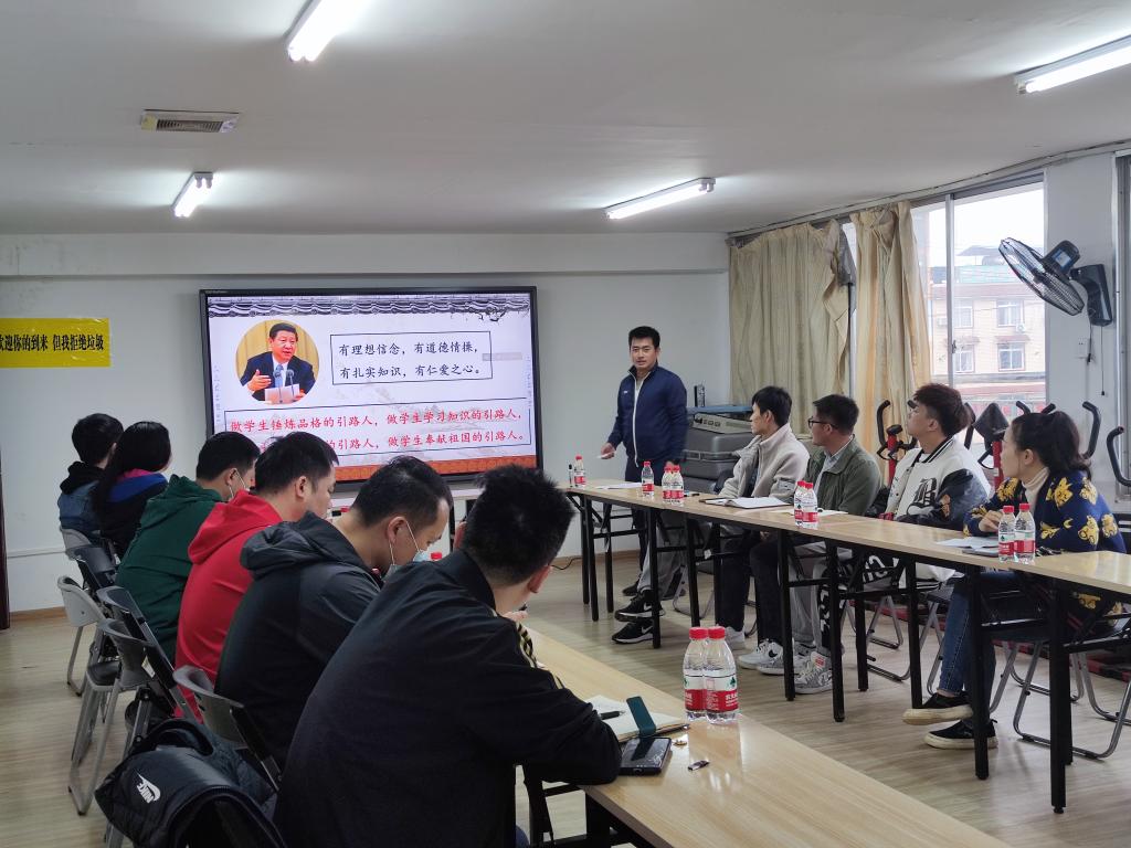 3月30日下午,体育与健康学院教工党支部于彰善楼3楼会议室“以德立身、以德立学、以德施教、以德育德”师德师风主题党员活动日,教工党支部涂海宁主持本次党日活动。